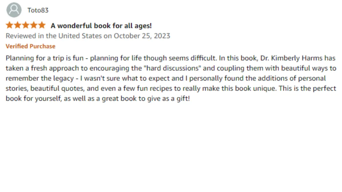 The workbook includes handy templates to encourage us to write legacy letters, reconciliation letters, and even a letter to help our survivors understand the mourning process.